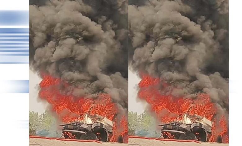सकरी नेशनल हाईवे पर खड़े ट्रेलर में लगी भीषण आग, मचा हड़कंप
