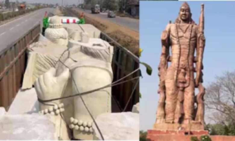 चंदखुरी स्थित कौशल्या माता मंदिर परिसर में स्थापना के लिए ग्वालियर से भगवान श्रीराम की 51 फीट ऊंची वनवासी प्रतिमा रायपुर पहुंच गई है. प्रतिमा रीजनल आर्ट एंड क्राफ्ट डिजाइन सेंटर में प्रसिद्ध मूर्तिकार दीपक विश्वकर्मा ने इस मूर्ति का निर्माण किया है. प्रभु श्रीराम की नई प्रतिमा की स्थापना कांग्रेस शासनकाल में कौशल्या धाम परिसर में वर्ष 2021 में 51 फीट ऊंची श्रीराम की प्रतिमा के स्थान पर की जाएगी.