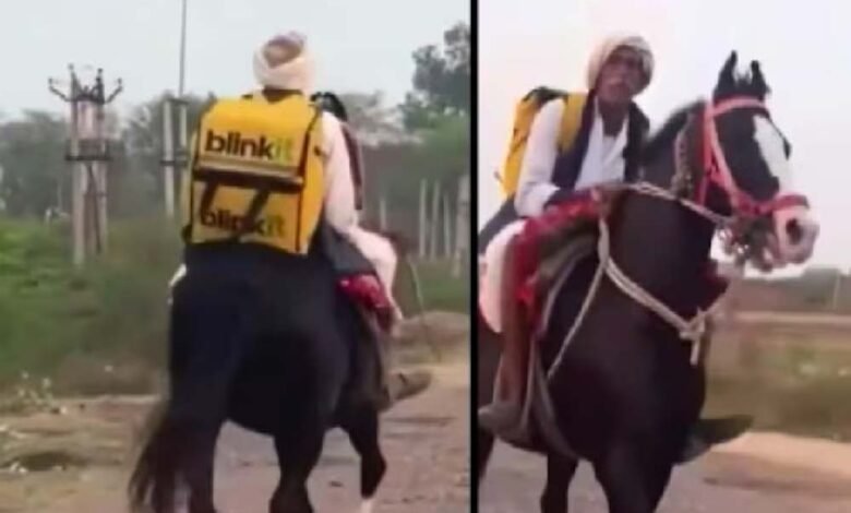 वीडियो में दिख रहा है कि बुजुर्ग व्यक्ति आराम से घोड़े पर बैठकर सड़क से गुजर रहा है. उसके पीछे लटका ब्लिंकिट का बैग साफ दिखाई देता है, जो आमतौर पर कंपनी के डिलीवरी पार्टनर्स इस्तेमाल करते हैं. हालांकि यह साफ नहीं हो पाया है कि वह सच में किसी ग्राहक का ऑर्डर पहुंचाने जा रहे थे या सिर्फ मजाकिया अंदाज में बैग लेकर निकले थे.