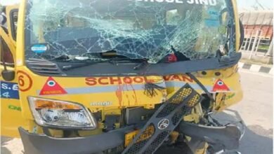 स्कूल की मिनी बस का टायर फटने की वजह से बेकाबू हुई बस डिवाइडर टकराई, 5 बच्चे व 10 अध्यापक घायल