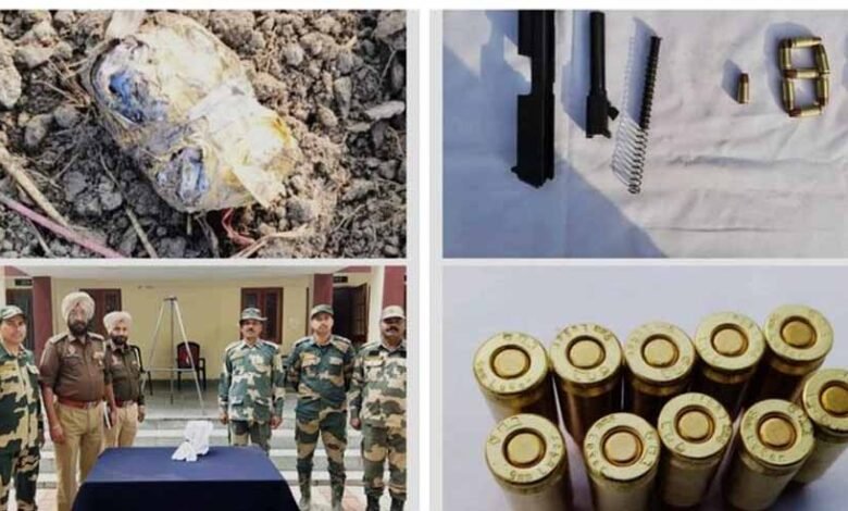 भारत–पाकिस्तान बॉर्डर पर तैनात सीमा सुरक्षा बल (बीएसएफ) ने बीते 24 घंटों में कई समन्वित और सटीक ऑपरेशनों के जरिए हथियार, ड्रोन और नशे की खेप को सीमा पार से भारत में घुसने से पहले ही जब्त कर लिया। अमृतसर के दलैरी गांव के पास खेतों में गश्त के दौरान बीएसएफ जवानों ने एक संदिग्ध वस्तु देखी। सर्च ऑपरेशन बढ़ाया गया तो जमीन में छिपी पीले टेप में लिपटी एक पिस्तौल बरामद हुई। शुरूआती जांच में साफ हुआ कि हथियार को सीमा पार से ड्रोन या फेंसिंग पार फेंककर भेजा गया था।