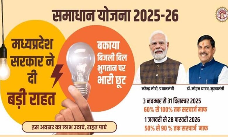 ऊर्जा मंत्री प्रद्युम्न सिंह तोमर ने बताया है कि समाधान योजना में अब तक 25 लाख 75 हजार बिजली उपभोक्ताओं में सरचार्ज में छूट का लाभ लिया है। उन्होंने कहा है कि मध्यप्रदेश सरकार की समाधान योजना 2025-26 के द्वितीय व अंतिम चरण को 31 मार्च 2026 तक बढ़ा दिया गया है। पूर्व में यह योजना 28 फरवरी तक लागू थी। उल्लेखनीय है कि पिछले वर्ष 3 नवम्बर को समाधान योजना 2025-26 की शुरुआत हुई थी। समाधान योजना में तीन माह से अधिक के बकायादार उपभोक्ताओं को एकमुश्त राशि जमा करने पर 90 प्रतिशत तक सरचार्ज में छूट का लाभ दिया जा रहा है। मंत्री तोमर ने उपभोक्ताओं से अपील की है कि यदि वे तीन माह से अधिक के बकाएदार हैं और योजना में अभी तक शामिल नहीं हो पाए वे अब 31 मार्च तक योजना में शामिल होकर अपना बकाया बिल एकमुश्त जमा करके 90 फीसदी तक सरचार्ज माफी का लाभ उठा सकते हैं।
