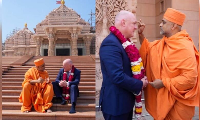 न्यूजीलैंड के प्रधानमंत्री क्रिस्टोफर लक्सन ने 16-20 मार्च तक भारत की अपनी आधिकारिक यात्रा के तीसरे दिन मंगलवार को नई दिल्ली में अक्षरधाम मंदिर का दौरा किया। लक्सन ने एक्स पर लिखा, "न्यूजीलैंड के हिंदू समुदाय ने हमारे देश के लिए बहुत बड़ा योगदान दिया है। आज दिल्ली में, मैंने कई कीवी-हिंदुओं के लिए पवित्र स्थान – बीएपीएस स्वामीनारायण अक्षरधाम मंदिर में नमन किया।"