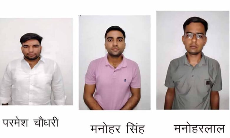 गिरफ्तार एसआई में परमेश चौधरी पुत्र हनुमान चौधरी (26), निवासी मालियों की ढाणी, ग्राम त्योदा, थाना सांभर, जयपुर ग्रामीण शामिल हैं। वर्तमान में वह टोंक पुलिस लाइन में प्रोबेशनर के रूप में कार्यरत था। दूसरा आरोपी मनोहर सिंह पुत्र वगताराम (25), निवासी ग्राम सेडीया, थाना करड़ा, जिला जालौर है, जो कोटा शहर पुलिस लाइन में प्रोबेशनर उपनिरीक्षक के तौर पर नियुक्त था। तीसरा आरोपी मनोहरलाल पुत्र विरदाराम (26), निवासी वियो का गोलिया, ग्राम पुनासा, थाना भीनमाल, जिला जालोर है, जो सिरोही पुलिस लाइन में प्रोबेशन पर था।