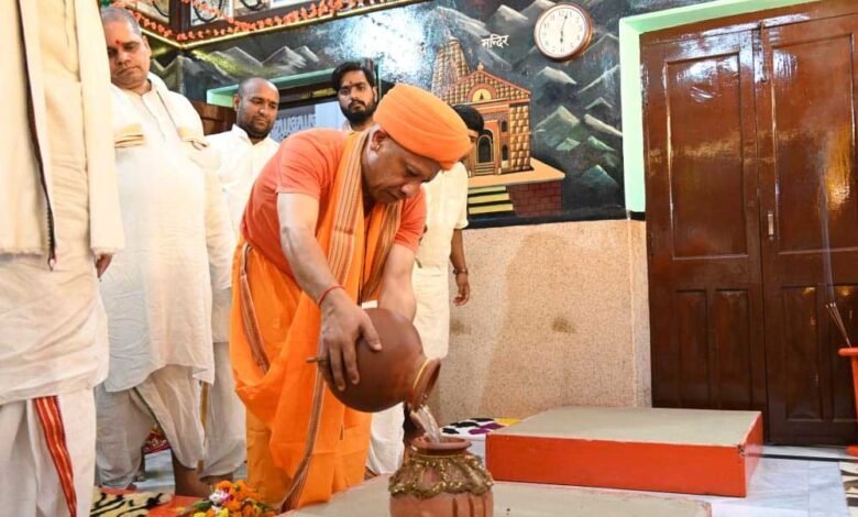गोरखनाथ मंदिर के शक्तिपीठ में गोरक्षपीठाधीश्वर एवं मुख्यमंत्री योगी आदित्यनाथ ने की कलश स्थापना