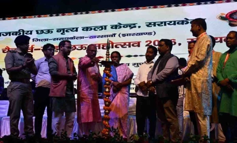 झारखंड के सरायकेला जिले के बिरसा स्टेडियम में सरकार के कलासंस्कृति विभाग और जिला प्रशासन के संयुक्त तत्वाधान में  चैत्र पर्व  सह छऊ महोत्सव 2026 का रंगारंग आगाज हो गया. कार्यक्रम में विश्व प्रसिद्ध छऊ नृत्य के साथ साथ दुसरे राज्यों से आए क्लासिकल नृत्यकार द्वारा नृत्य प्रस्तुत किया गया वहीं इंडियन आयडल फेम प्रियांशु दत्ता द्वारा सुरों की महफिल सजाई गई. कार्यक्रम का उदघाटन मुख्य अतिथि सिंहभूम सांसद जोबा मांझी के द्वारा  किया गया. समारोह को संबोधित करते हुए सांसद मांझी ने कहा कि छऊ हमारी संस्कृति है इसका विकास हम सबों का दायित्व है. छऊ के कारण सरायकेला की पहचान विदेशों तक है साथ ही देश के प्रतिष्ठित पुरस्कार पद्मश्री छऊ कलाकारों को मिले हैं यह सरायकेला के लिए गौरव की बात है. राज्य सरकार उससे राजकीय महोत्सव का दर्जा दिया है आने वाले दिनों में कला के साथ कलाकार का विकास होगा. कार्यक्रम का उद्घाटन दीप जलाकर किया गया. कार्यक्रम में जिला परिषद अध्यक्ष सोनाराम बोदरा, सरायकेला नगर पंचायत अध्यक्ष मनोज चौधरी, आदित्यपुर महा पौर संजय सरदार, डीसी नीतीश कुमार सिंह, एसपी मुकेश लुनायत का मोमेंटो और अंग वस्त्र देकर स्वागत किया गया.