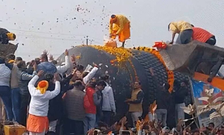 इधर, सोमवार को विराट शिवलिंग जैसे ही पूर्वी चंपारण की धरती पर पहुंचा, श्रद्धालुओं की भीड़ उमड़ पड़ी। स्थापना से 12 दिन पहले श्रद्धालुओं ने शिवलिंग का भव्य स्वागत किया। शिवलिंग को लेकर सबसे बड़ी चुनौती डुमरियाघाट थाना क्षेत्र‎के रामपुर-खजुरिया ओवरब्रिज को पार करना रहा। इसे पार करने में पांच घंटे लग गए। कड़ाके की ठंड के बावजूद हजारों की संख्या में भक्त घंटों पहले से सड़क किनारे खड़े होकर शिवलिंग के स्वागत का इंतजार करते नजर आए। डुमरिया घाट पुल पार करते ही चारों ओर हर-हर महादेव के नारे गूंजे। जगह-जगह भव्य स्वागत द्वार बनाए गए थे, फूल-मालाओं और रोशनी से पूरे रास्ते को सजाया गया था। श्रद्धालुओं ने ढोल-नगाड़ों और शंखनाद के साथ भगवान शिव का अभिनंदन किया। कई स्थानों पर शिवलिंग को कुछ देर के लिए रोका गया, जहां भक्तों ने विधिवत पूजा-अर्चना की और जयकारे लगाए।