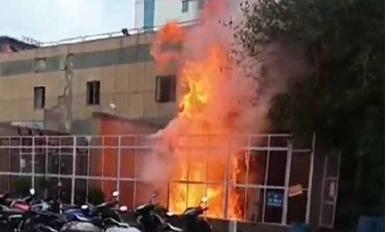 दिल्ली एम्स से ट्रांसफर में भंयकर विस्फोट की खबर सामने आई है। इसके चलते आग लग गई है। आग पर काबू पाने के लिए मौके पर दमकल की आठ गाड़ियां मौजूद हैं। जानाकारी के मुताबिक ये आग एम्स के ट्रामा सेंटर में लगे ट्रांसफार्मर में लगी है। आग बुझाने की कोशिशें जारी हैं।